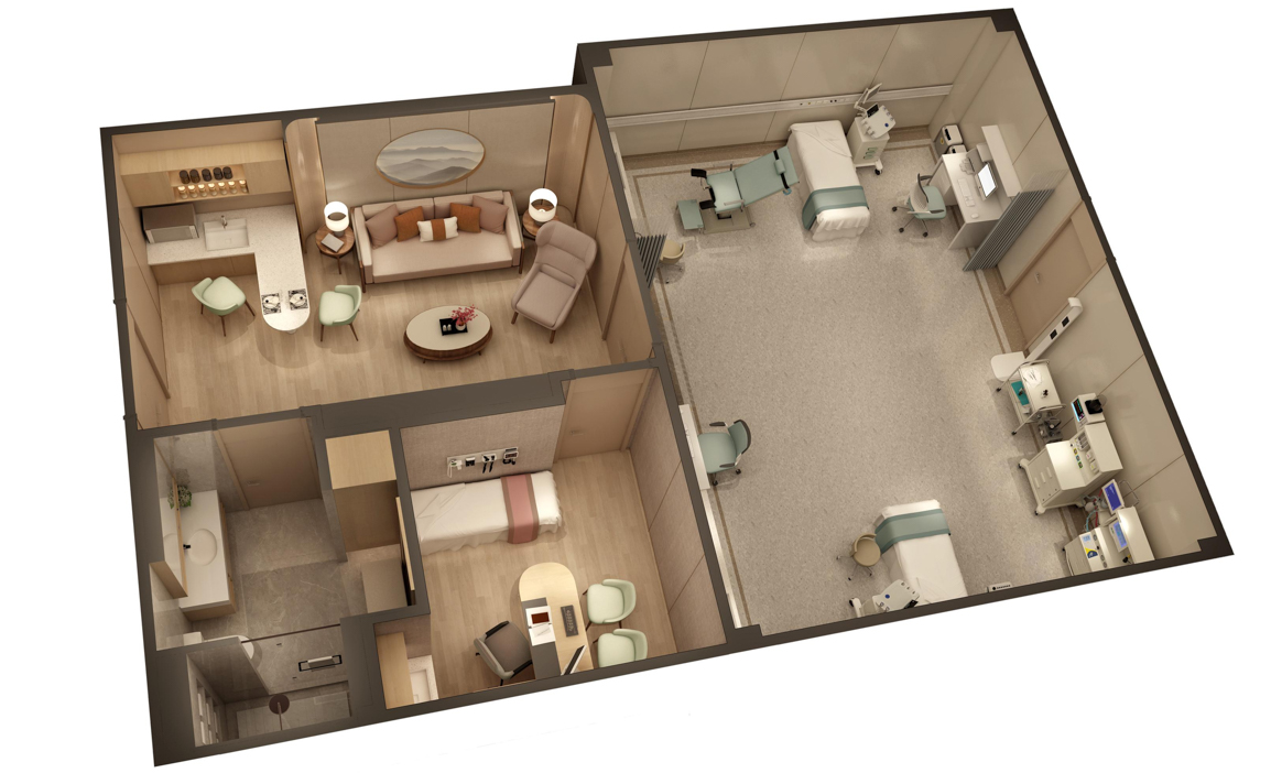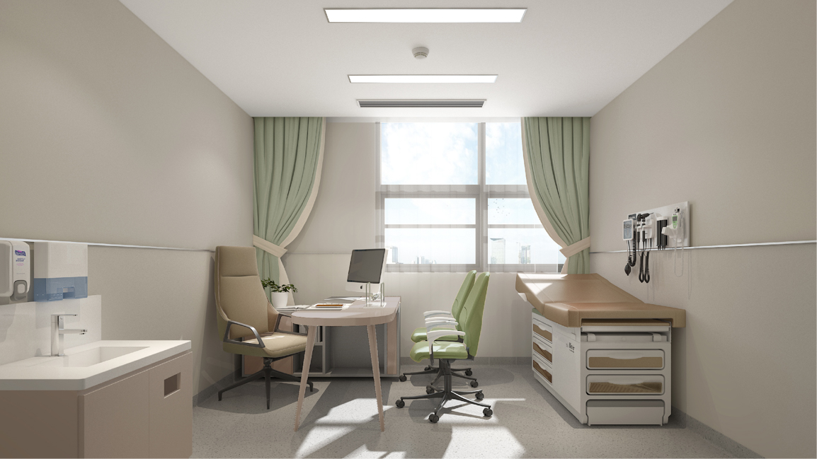 設(shè)計理念:醫(yī)院的環(huán)境對病人的生理和心理有著特殊治療作用。通過醫(yī)院環(huán)境的良性感官,消除和緩解由于 疾病給病人帶來的痛苦和焦慮,改變病人的心態(tài)情緒,這是現(xiàn)代化醫(yī)院,建立以病人為中心的醫(yī)院規(guī)劃、建筑設(shè)計的一個新的思路。
