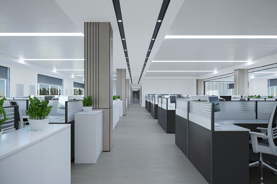 辦公室裝修室內(nèi)界面處理宜簡潔,著重營造空間的寧靜氣氛,并考慮到便于各種管線的鋪設(shè)、更換、維護(hù)、連接等需求。隔斷屏風(fēng)選擇適宜的高度,如需保證空間的連續(xù)性,可根據(jù)工作單元及辦公組團(tuán)的大小規(guī)模進(jìn)行合理選擇。