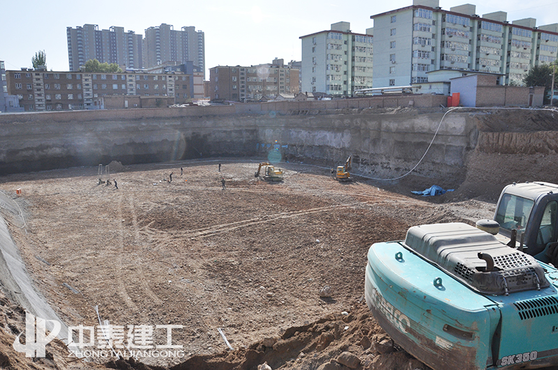 該項目于2019年10月25日開工進場,經(jīng)過前期的不懈努力,順利完成基槽平整,以及釬探工作,并且在寒冬來臨之前,順利完成1#樓筏板的澆筑。2020年4月初,面對嚴(yán)峻的疫情挑戰(zhàn),中泰建工認(rèn)真落實疫情防控,積極配合建設(shè)單位以及各政府部門完成檢查,確保達(dá)到疫情恢復(fù)施工要求,順利恢復(fù)施工,2020年6月17日全部完成1#樓正負(fù)零以下的地下主體工程。