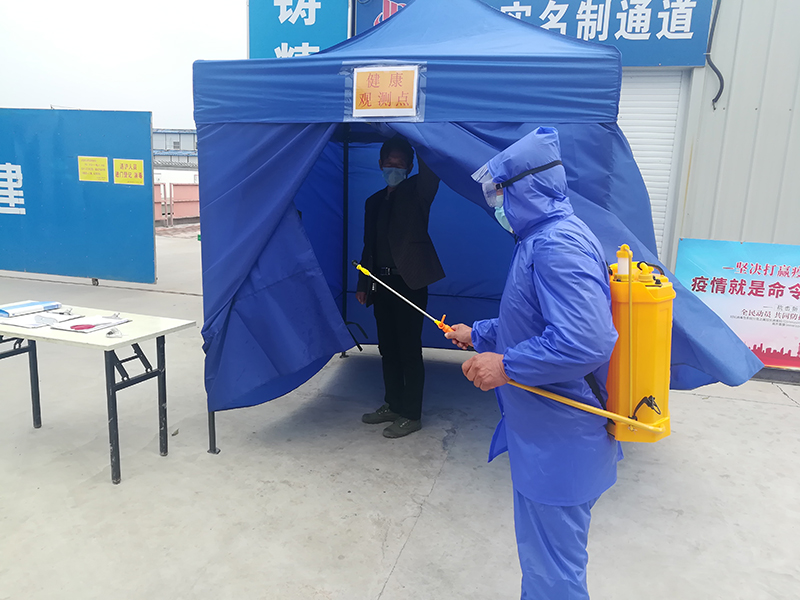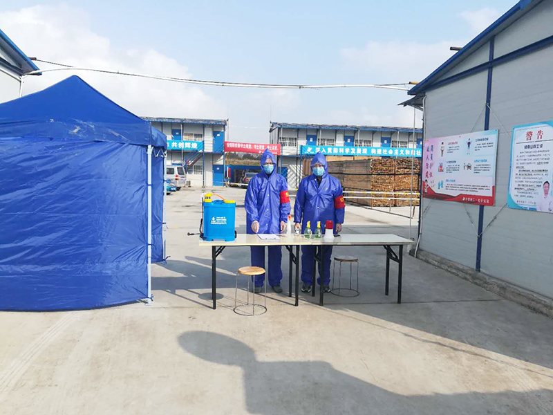 防疫消毒棚。現(xiàn)場(chǎng)防疫第一道屏障,所有復(fù)工人員及外訪人員都需要在此處接受體溫檢測(cè)及消毒,合格后方能登記入場(chǎng)。
