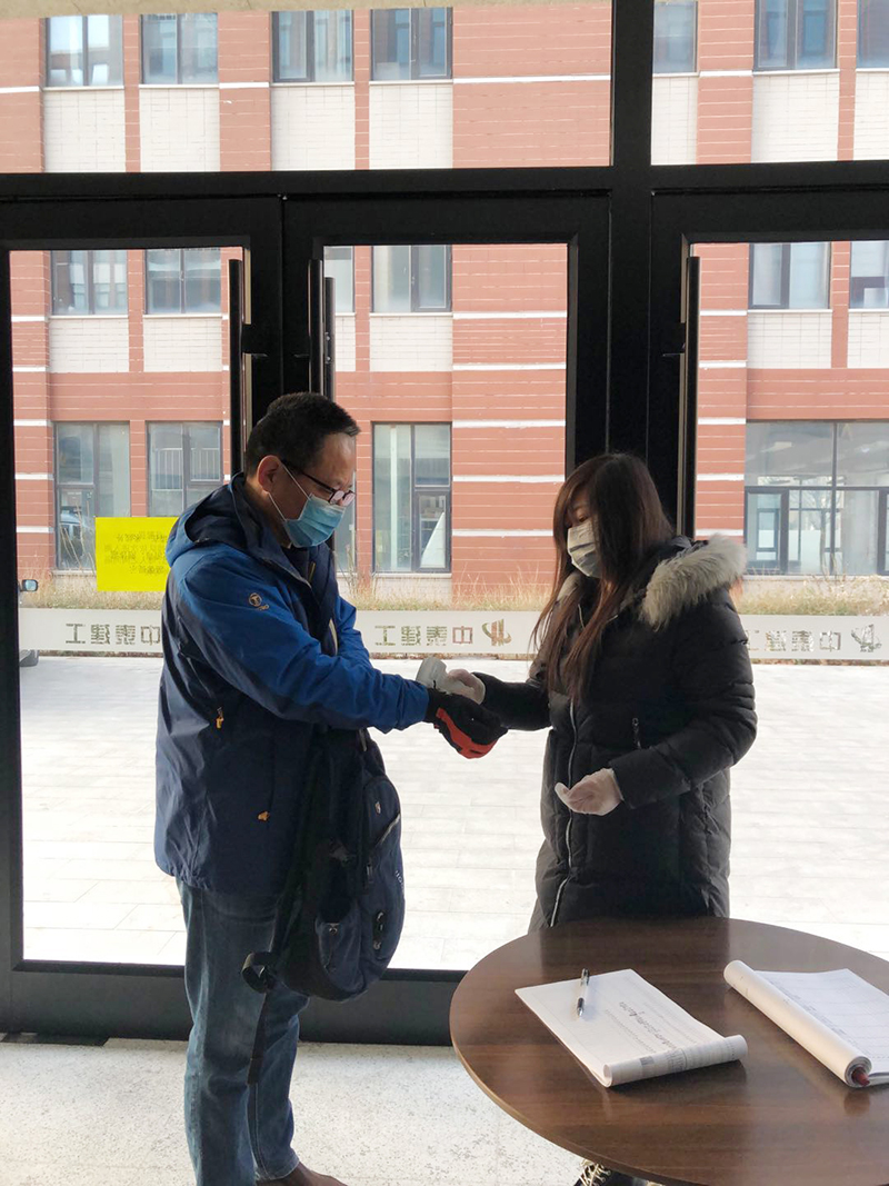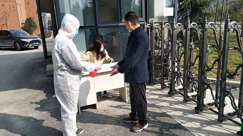 嚴(yán)控出入,守好第一關(guān)。每一個(gè)出入公司的人員,都要做好個(gè)人信息登記、全身消毒、體溫測(cè)量、佩戴口罩等日常防疫工作。