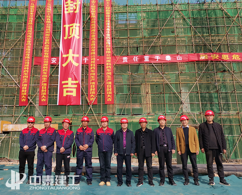2020年11月16日上午11點(diǎn)18分,初冬的暖陽(yáng)照耀著豫東大地,隨著鞭炮聲的響起,最后一方混凝土澆筑完成,中泰建工承建的河南項(xiàng)城樂普藥業(yè)股份有限公司原料藥車間項(xiàng)目喜封金頂。