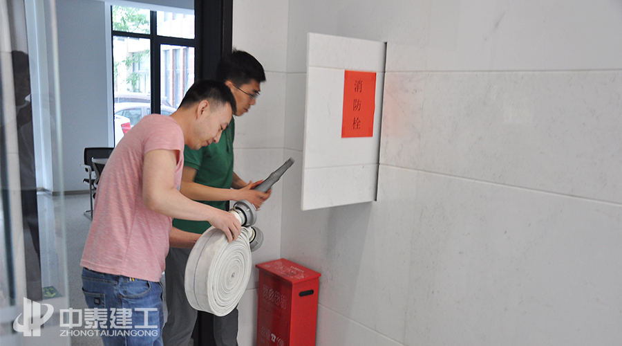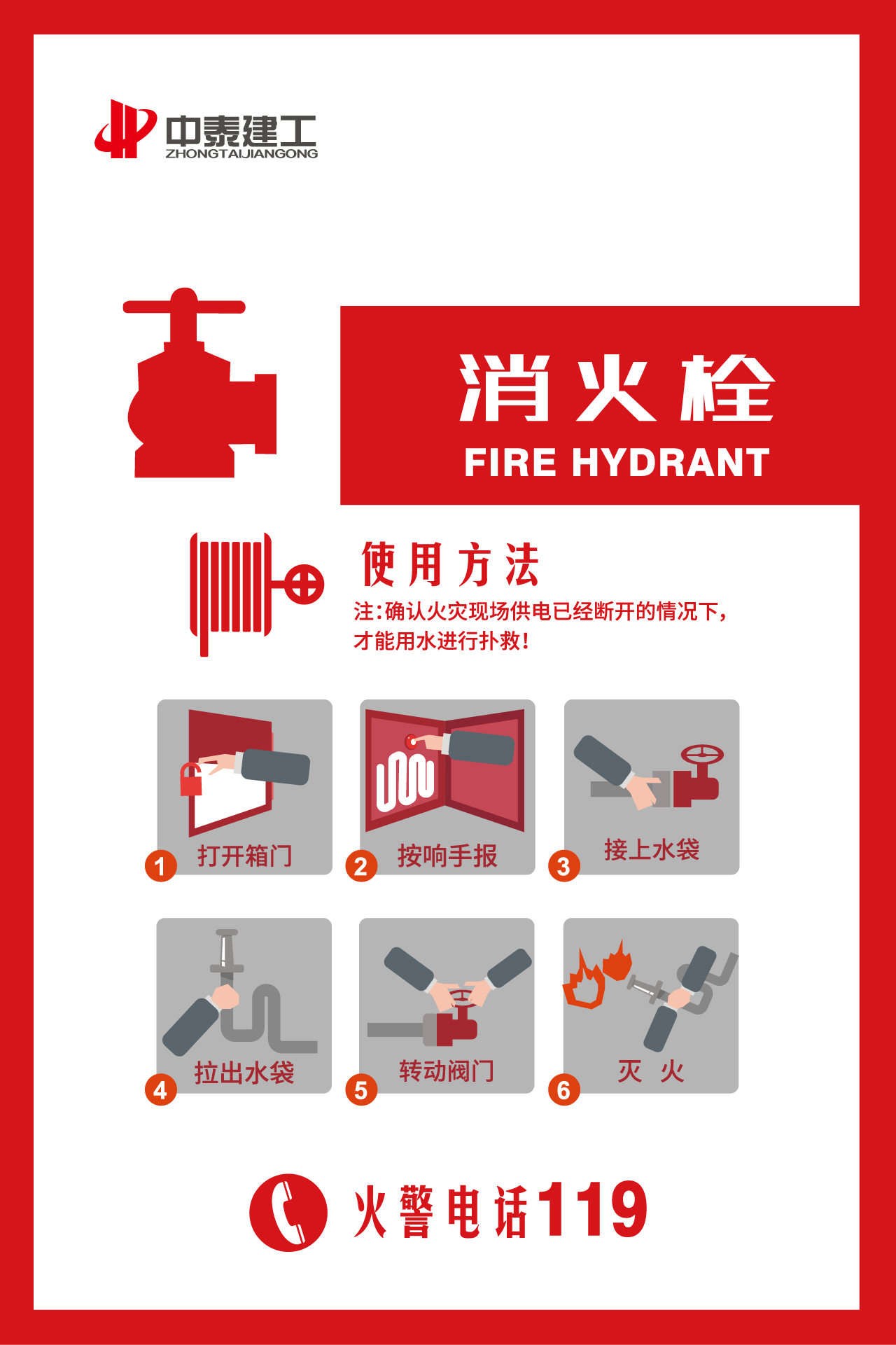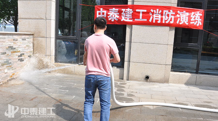 下圖為中泰建工員工對于常見的室內(nèi)消火栓進行演習示范: