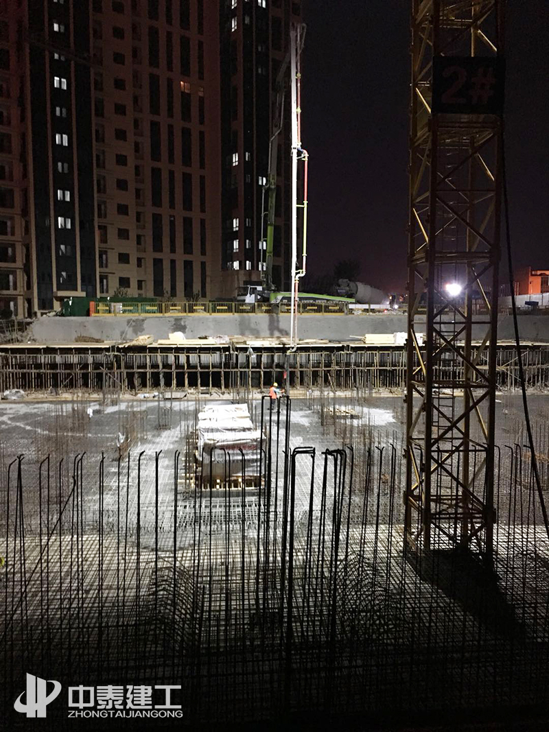經(jīng)過63個小時不間斷澆筑,中泰建工承建的臨沂·榮盛華府房屋建筑工程項目全體參建人員以積極認(rèn)真的工作態(tài)度、飽滿的工作熱情,順利完成了主樓筏板大體積混凝土澆筑任務(wù),實現(xiàn)一次連續(xù)無停頓澆筑混凝土3100余方。