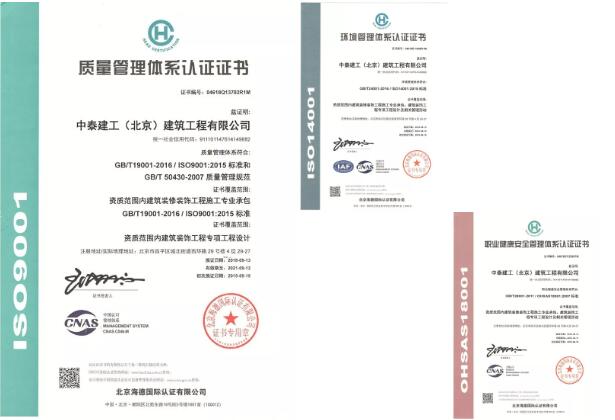 中泰建工目前擁有各類專業(yè)技術(shù)人次300余人,其中高、中級(jí)工程師100人,持證一、二級(jí)建造師59人,建委八大員100余人,并擁有各類大中型工程機(jī)械設(shè)備以及檢測(cè)儀器,具有國(guó)家“建筑工程”、“市政公用工程”、“機(jī)電工程”,三項(xiàng)施工總承包資質(zhì),建筑裝飾工程設(shè)計(jì)施工一體化等八項(xiàng)專業(yè)承包資質(zhì),并成功取得ISO9001質(zhì)量管理體系認(rèn)證,ISO14001環(huán)境管理體系認(rèn)證,OHSAS18001職業(yè)健康管理體系認(rèn)證,被評(píng)為AAA級(jí)企業(yè),并于2018年順利晉級(jí)為國(guó)家級(jí)高新技術(shù)企業(yè)。