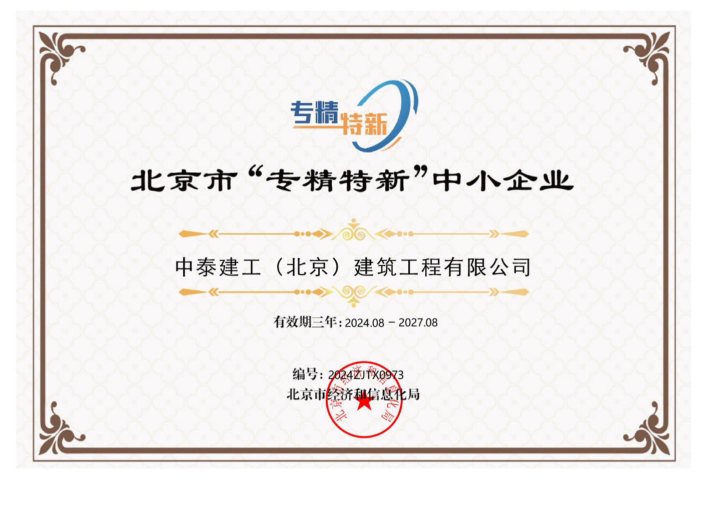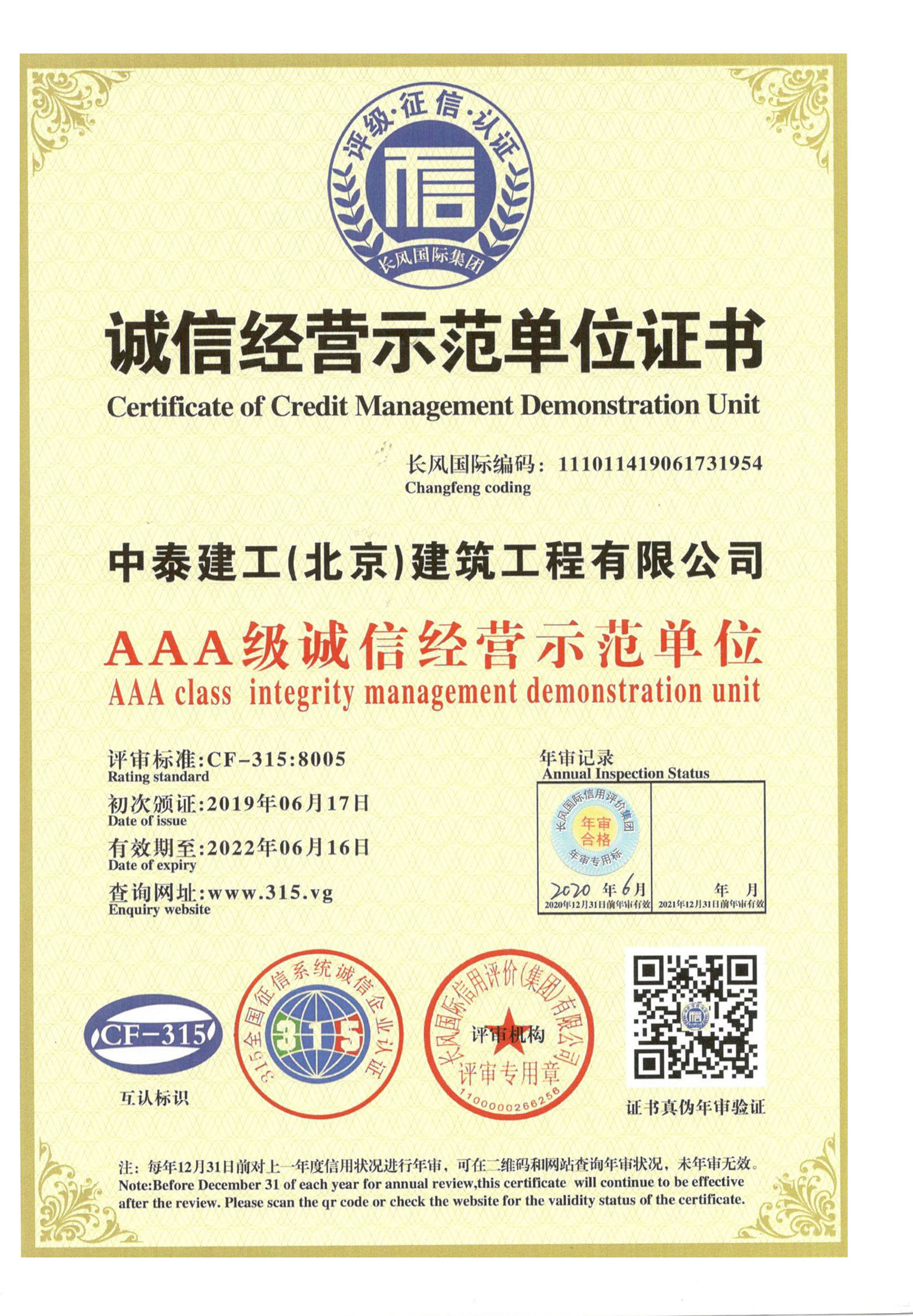 中泰建工子公司:居佳祥和榮譽(yù)資質(zhì)