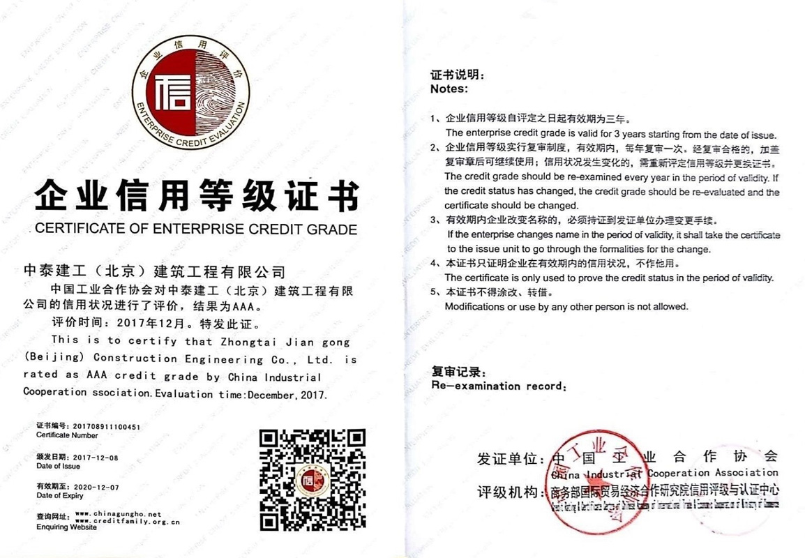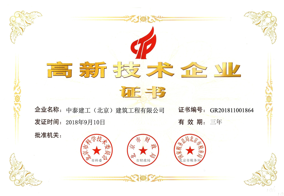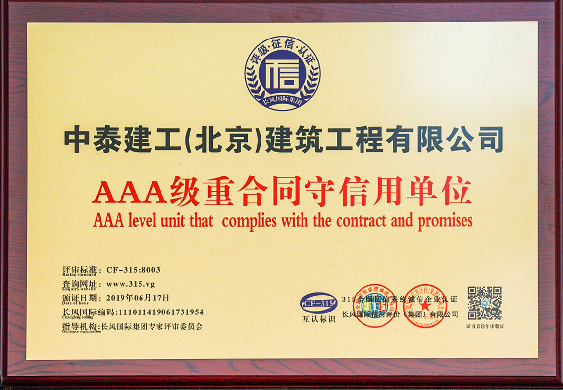 2015 年 9 月公司順利通過(guò) IS9001 國(guó)家質(zhì)量標(biāo)準(zhǔn)認(rèn)證;2017年12月被評(píng)為AAA企業(yè)并頒發(fā)企業(yè)信用等級(jí)證書(shū);2018年1月30日被評(píng)為中關(guān)村高新技術(shù)企業(yè)。擁有各類大中型工程機(jī)械設(shè)備及檢測(cè)儀器。