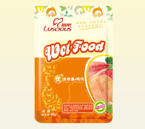 產(chǎn)品名稱:金槍魚+雞肉 規(guī)格型號(hào):85g 每箱數(shù)量:120袋 公司網(wǎng)址:www.luspet.com